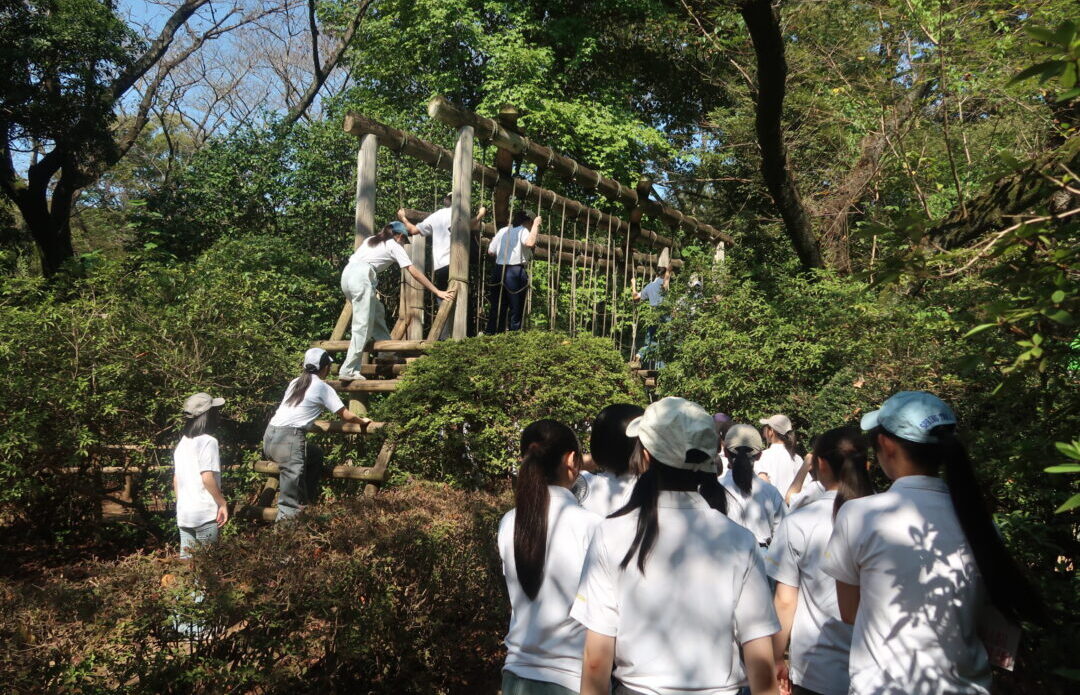 食事のあとは清水公園内のアスレチック施設に移動し、定められたコースに沿ってアスレチックに挑戦しました。様々な種類の遊具が利用でき、皆元気に体を動かしていました。