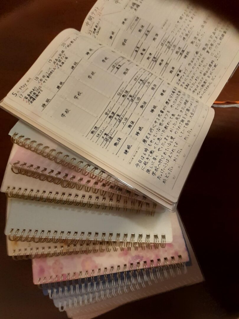 中学1年生は入学時全員に手帳が配られ、その使い方を学びます。最初のころは先生に手帳を提出して使い方のアドバイスを受けていました。はじめはどこに何を書いたら良いのかわからなかった私でしたが、だんだんと一目で分かるようになっていきました。中学2年生以降では1年目の経験をもとにして自分の使い方にあった手帳を買い、使っていきます。