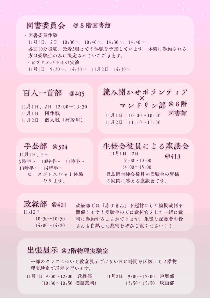 9:00~10:00 14:00~15:00 生徒会役員による受験生向け座談会